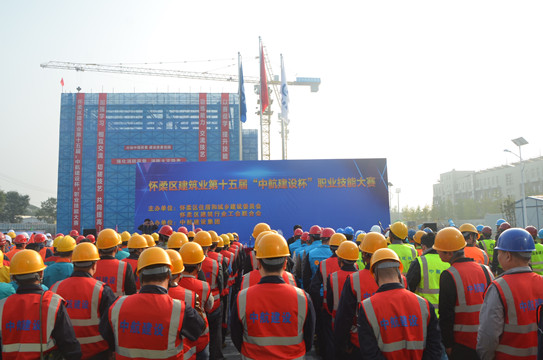 10月18日,由怀柔区住建委、建筑行业工会联合会共同主办,华体会官方版网站登录入口协办的怀柔区建筑业第十五届“中航建设杯”职业技能大赛,在我集团公司承建的一零一中学怀柔校区扩建项目部拉开帷幕。怀柔区住建委工程质量监督站站长单焜,区建筑业协会会长王贵军,区总工会生产生活部部长李文兴,区人力资源和社会保障局职工培训劳动鉴定中心主任刘利民,集团公司总工程师陈劲,工会主席郑春梅一同出席本次活动。