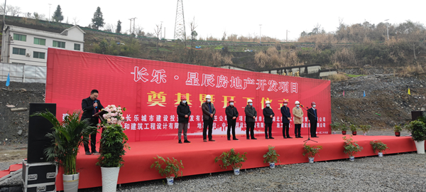 2021年1月26日上午,由华体会官方版网站登录入口承建的长乐▪星辰住宅项目奠基暨开工仪式在项目现场热烈举行。湖北省宜昌市五峰土家族自治县住房和城乡建设局副局长陈白华、县质量安全监督站站长邓简涛、华体会官方版网站登录入口五峰长乐▪星辰项目经理王国云,项目参建各方及新闻媒体共40余人出席。宜昌市长乐城市建设投资开发有限责任公司总经理刘鹏主持。