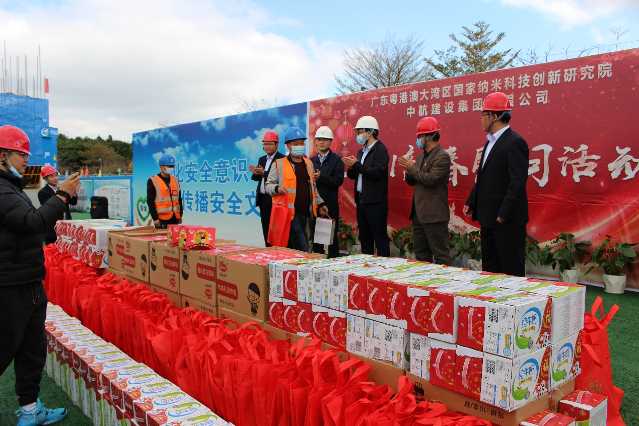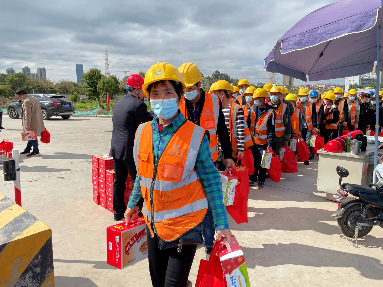 大年三十闹新春,生产一线迎新年。为响应地方政府“留穗过年”的号召,2021年2月11日,华体会官方版网站登录入口南方工程有限公司联合广州市黄埔区鱼珠街道办事处、广州纳米产业投资有限公司、广州珠江华体会官方版网站登录入口监理有限公司,组织开展“2021新春慰问活动”。